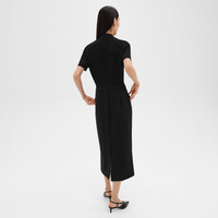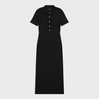Our military dress is tailored in our signature Japanese Admiral Crepe for a smooth and softly draped fit that maintains a polished appearance. Its slim silhouette features a partial button front closure to meet a pointed collar, short sleeves, a pair of front flap pockets, hip slip pockets and zipped up the side. We are committed to positively impacting the people who wear our clothes, our industry, and our planet, beginning with our fabrics. Our signature crepe is woven with triacetate, a fabric made from acetic acid and wood pulp sourced from certified responsibly managed forests. Style #: O0709626 Fit True to size, choose your normal size Slim silhouette, short sleeves Below-the-knee length Model is 5’11” and wearing a US size 2 Materials & Care Composition bodice: 80% merino wool 17% recycled nylon 3% spandex; skirt: 70% triacetate 30% polyester; lining: 100% recycled polyester Care Do not wash. Do not bleach. Do not tumble dry. Cool iron if needed. Dry clean with any solvent except trichloroethylene. Imported