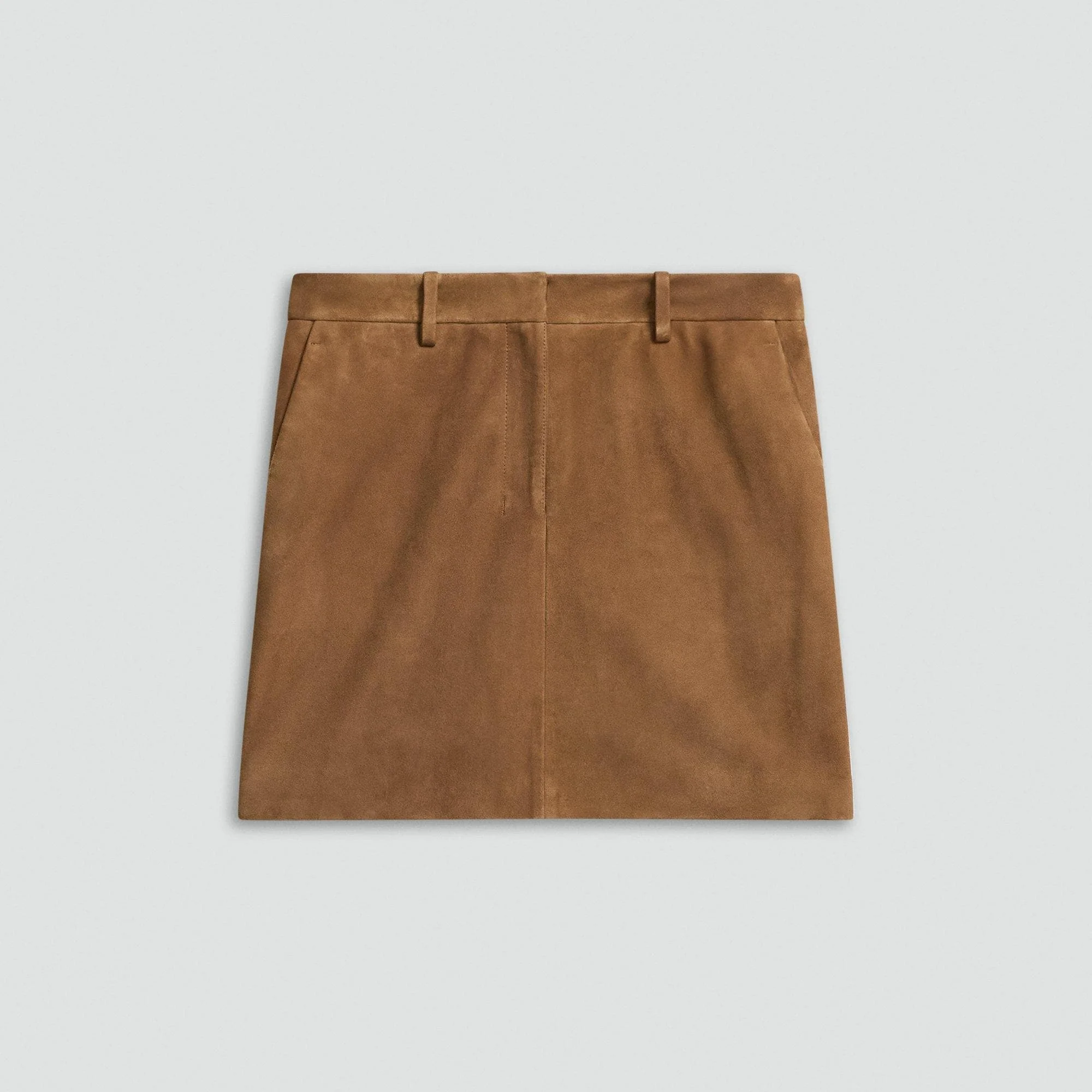 Please enter your email below to be notified when this item is in stock Tailored like a trouser, cut like a mini. This skirt is crafted in soft suede with clean lines, slant pockets, and a sharp waistband. Finished with a zip fly and belt loops. Pair it with a crisp shirt or a relaxed knit to play with proportion. Crafted in lamb suede with a smooth, supple finish and natural structure. Style #: P0700303 Please enter your email below to be notified when this item is in stock Fit True to size, choose your normal size High rise, A-line Mini length Model is 5’11” and wearing a US size 2 Materials & Care Composition 100% lamb leather Care Do not wash. Do not bleach. Do not tumble dry. Do not iron. Do not dry clean. Professional leather clean only. Imported