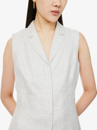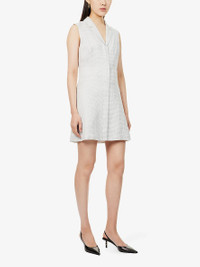 PRODUCT DETAILS - Theory linen-blend mini dress - 52% linen, 48% viscose; lining 100% polyester - Concealed zip fastening at front - Slim fit, notched lapels, sleeveless, lined - Specialist dry clean - True to size - Size UK 8: length 34in / 87cm - Model is 5ft 10in/1.78m and wears a size UK 8 - Midweight, non-stretch Ref: R04389833