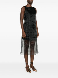 overlay midi dress Highlights - Black - Linen blend - Sheer overlay - Boat neck - Sleeveless - Straight hem - Mid-length - Rear zip fastening Imported Composition Lining: Linen/Flax 62%, Viscose 36%, Spandex/Elastane 2% Outer: Polyester 100% SIZE & FIT Model measurements Height 5 ft 10 in(1.77 m) Bust/Chest 32.28 in(82 cm) Hips 35.03 in(89 cm) Waist 25.19 in(64 cm) FittingInformation Designed for a slim fit that sits just away from the body offering a close yet comfortable fit The internal slip sits just away from the body, offering a close yet comfortable fit Made from a midweight fabric This piece fits true to size – take your usual size Washing instructions Dry Clean Only