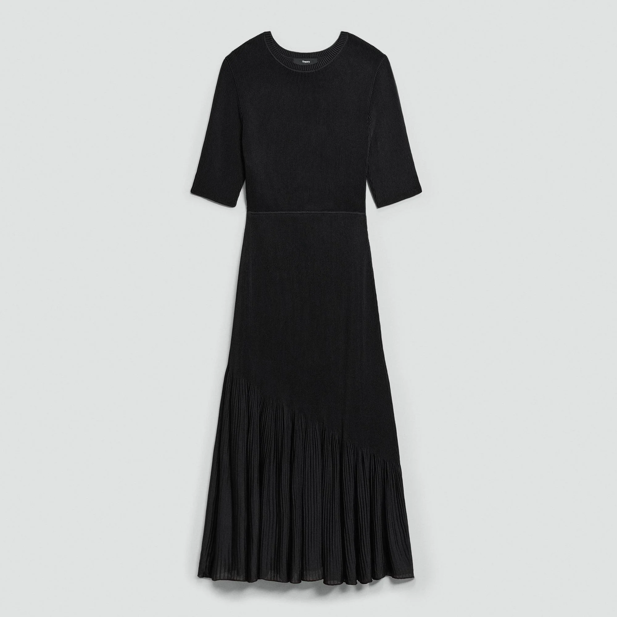 Please enter your email below to be notified when this item is in stock This knit midi dress features a crew neckline, short sleeves, and ribbed paneling. An asymmetrical seam details the straight, flowy hem. Inspired by flexible athletic wear, the fabric is a stretchy rayon yarn made from certified pre-consumer recycled materials. Style #: P1116703 Please enter your email below to be notified when this item is in stock Materials & Care Composition 94% rayon 5% nylon 1% spandex Care Do not wash. Do not bleach. Do not tumble dry. Cool iron if needed. Dry clean with any solvent except trichloroethylene. Imported