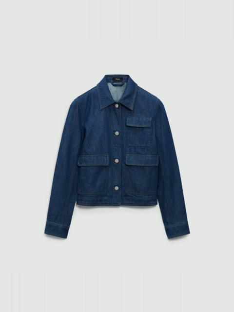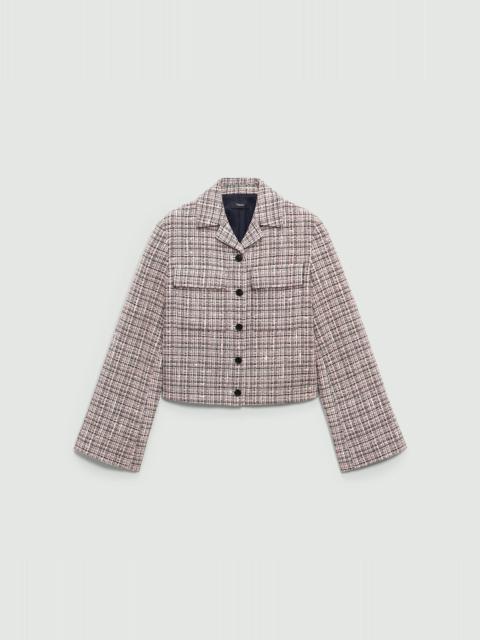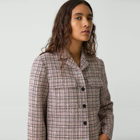 A classic, cropped jacket with a relaxed silhouette, this button-front style is detailed with notched lapels and a pair of chest patch pockets. Produced in Italy from a leading tweed supplier, the cotton-blend fiber content and fabric weight provides comfort and breathability through the use of subtle shine and twisted yarns. Style #: P0104105 Fit True to size, choose your normal size Relaxed fit, long sleeves Hip length Model is 5’11” and wearing a US size 2 Materials & Care Composition 64% cotton 19% polyester 15% viscose 2% other fibers Care Do not wash. Do not bleach. Do not tumble dry. Cool iron if needed. Dry clean with any solvent except trichloroethylene. Imported