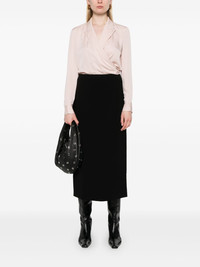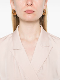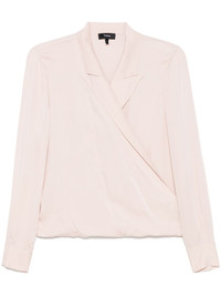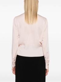 peak lapel wrap blouse Highlights - Blush pink - Buttoned cuffs - Plunging v-neck - Long sleeves - Cropped Imported Composition Silk 100% SIZE & FIT FittingInformation Designed for a relaxed fit, this piece allows for comfort and movement when worn Made from a lightweight non-stretch fabric