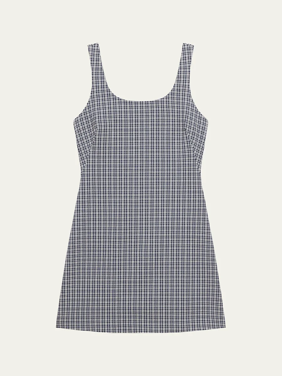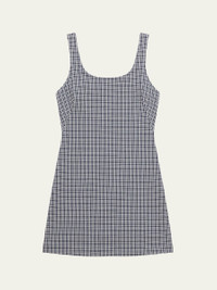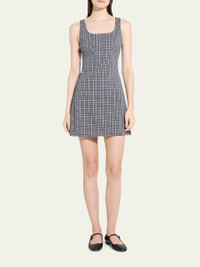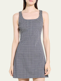 An elevated tank dress by Theory, this mini features a flattering fit-and-flare silhouette in an all-over plaid print. Scoop neckline Sleeveless Hem falls above the knee Center back zip Cotton/elastane Dry clean Imported Online Inquiries: BGS21_T6Z4Q| Store Inquiries: #5073471