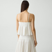 Please enter your email below to be notified when this item is in stock Our pleated version of a summer camisole features thin straps and a high-low hemline in a fit-and-flare silhouette. It’s crafted in a tumbled lightweight lawn fabrication woven with a blend of cotton and certified recycled nylon made from pre-consumer waste by a leading Japanese mill. Style #: P0504507 Please enter your email below to be notified when this item is in stock Fit True to size, choose your normal size Fit-and-flare silhouette, sleeveless Cropped length Model is 5’11” and wearing a US size S Materials & Care Composition 68% cotton 32% recycled nylon Care Do not wash. Do not bleach. Do not tumble dry. Cool iron if needed. Dry clean with any solvent except trichloroethylene. Imported