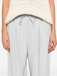 pleated crepe trousers Highlights - Ice blue - Elasticated drawstring waistband - Two side inset pockets - Two rear flap pockets Imported Composition Outer: Triacetate 70%, Polyester 30% Lining: Polyester 100% SIZE & FIT Model measurements Height 5 ft 9 in(1.76 m) Bust/Chest 31.88 in(81 cm) Hips 35.43 in(90 cm) Waist 24.8 in(63 cm) FittingInformation Designed with a wide-leg cut, these trousers allow for a close fit at the waist and offer a loose and roomy fit over the leg Adjust this piece’s waistband to your preference using the drawstring Made from a midweight non-stretch fabric
