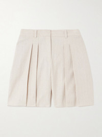 Pleated Linen-blend Canvas Shorts
