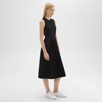 Intricately pleated for a fresh take on a closet staple, this midi style is designed with a slim-fitting sleeveless bodice. It’s crafted with a polyester and cotton blended poplin with a clean look and soft hand. Style #: O0305610 Fit True to size, choose your normal size Fit-and-flare silhouette, sleeveless Below-the-knee length Model is 5’11” and wearing a US size 2 Materials & Care Composition 65% polyester 35% cotton Care Do not wash. Do not bleach. Do not tumble dry. Do not iron. Dry clean with any solvent except trichloroethylene. Imported