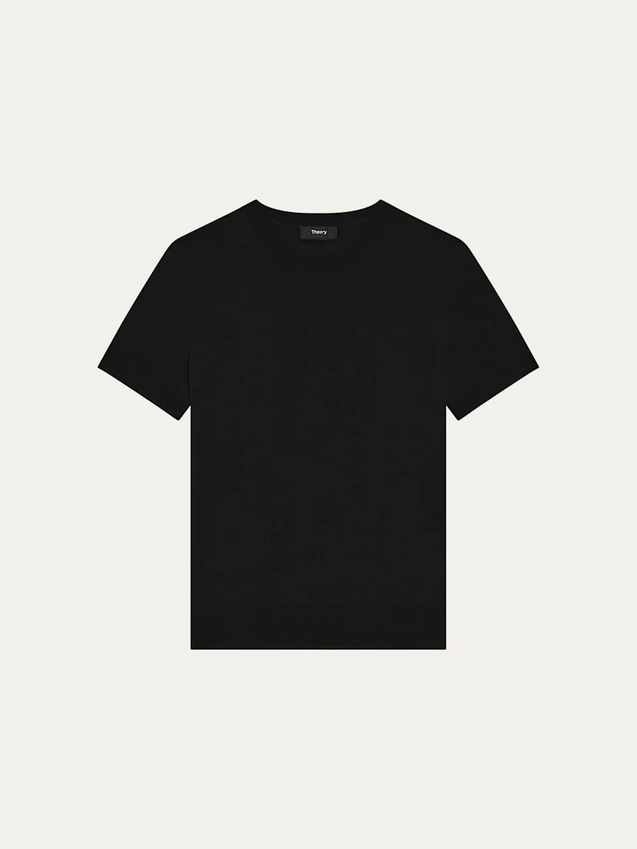 Theory classic basic tee in Regal Wool Crew neckline Short sleeves Banded cuffs and hem Slim fit Pullover style Merino wool Dry clean Imported