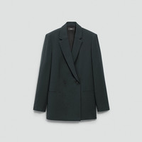 Please enter your email below to be notified when this item is in stock This double-breasted blazer is tailored with relaxed proportions and a clean, softly defined drape. Cut from Japanese Admiral Crepe and finished with notch lapels and welt pockets. It’s a sharp layer that moves seamlessly from desk to dinner. Our signature crepe is woven with triacetate, a fabric made of wood pulp sourced from certified responsibly managed forests. Style #: P0109115 Please enter your email below to be notified when this item is in stock Fit True to size, choose your normal size Relaxed fit, bracelet-length sleeves Regular length Model is 5’11” and wearing a US size 2 Materials & Care Composition 70% triacetate 30% polyester Care Do not wash. Do not bleach. Do not tumble dry. Cool iron if needed. Dry clean with any solvent except trichloroethylene. Imported