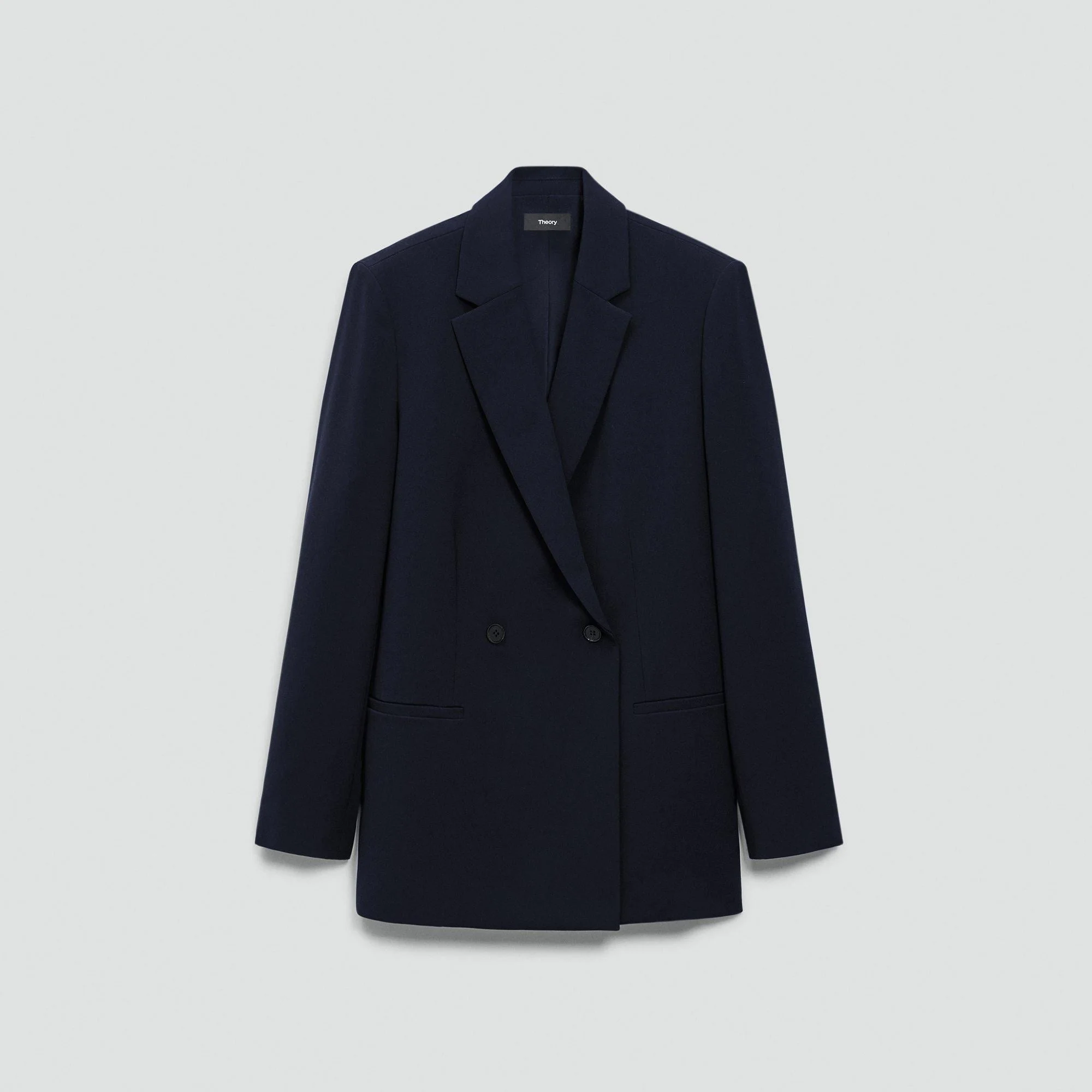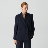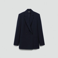 Please enter your email below to be notified when this item is in stock This double-breasted blazer is tailored with relaxed proportions and a clean, softly defined drape. Cut from Japanese Admiral Crepe and finished with notch lapels and welt pockets. It’s a sharp layer that moves seamlessly from desk to dinner. Our signature crepe is woven with triacetate, a fabric made of wood pulp sourced from certified responsibly managed forests. Style #: P0109115 Please enter your email below to be notified when this item is in stock Fit True to size, choose your normal size Relaxed fit, bracelet-length sleeves Regular length Model is 5’11” and wearing a US size 2 Materials & Care Composition 70% triacetate 30% polyester Care Do not wash. Do not bleach. Do not tumble dry. Cool iron if needed. Dry clean with any solvent except trichloroethylene. Imported