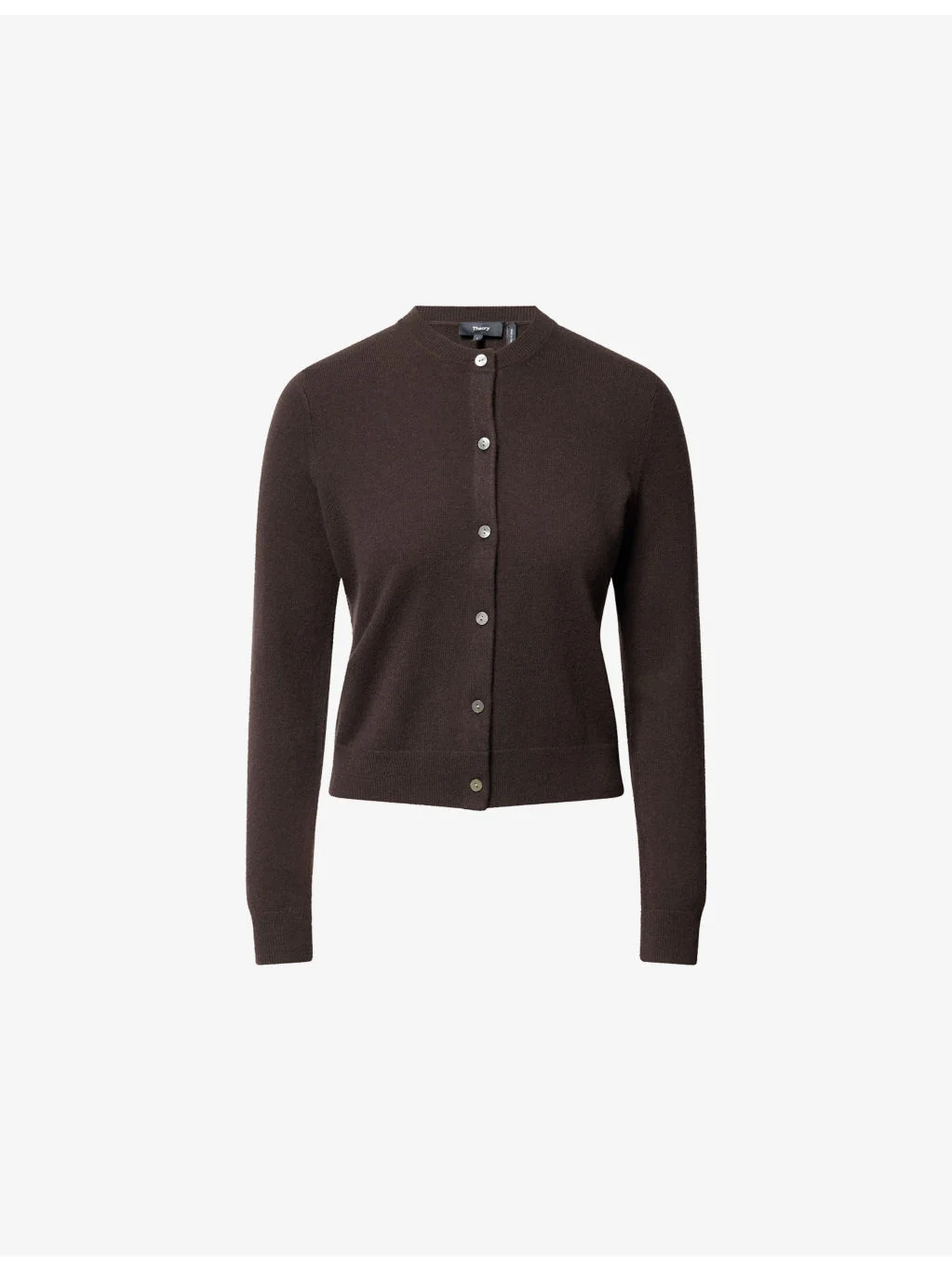 PRODUCT DETAILS - Theory cashmere cardigan - 100% cashmere - Button fastening at front - Round neck, long sleeves, ribbed trims - Dry clean - Made in Italy - True to size - Model is 5ft 10in/1.78m and wears a size small - Lightweight, slight stretch Ref: R04531197