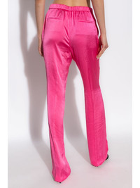 satin tailored trousers Highlights - Pink - Satin finish - High-waisted - Slight flare - Two side slit pockets - Rear elasticated waistband - Two rear welt pockets - Long length Imported Composition Polyester 100% Washing instructions Dry Clean Only