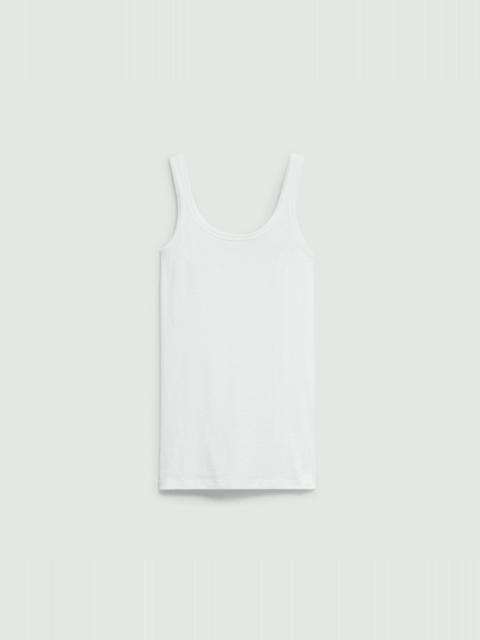 Our fresh approach to a sleeveless tee is cut for a slim fit with a straight hem. Finished with a scoop neckline, it’s crafted from ultra-soft certified organic Pima cotton jersey that’s grown, knit, and dyed in Peru. Style #: M0124533 Fit True to size, choose your normal size Slim fit, sleeveless Hip length Model is 5’11” and wearing a US size S Materials & Care Composition 100% cotton Care Machine wash cold, gentle cycle, with similar colors. Do not bleach. Tumble dry low. Cool iron if needed. Do not dry clean. Imported