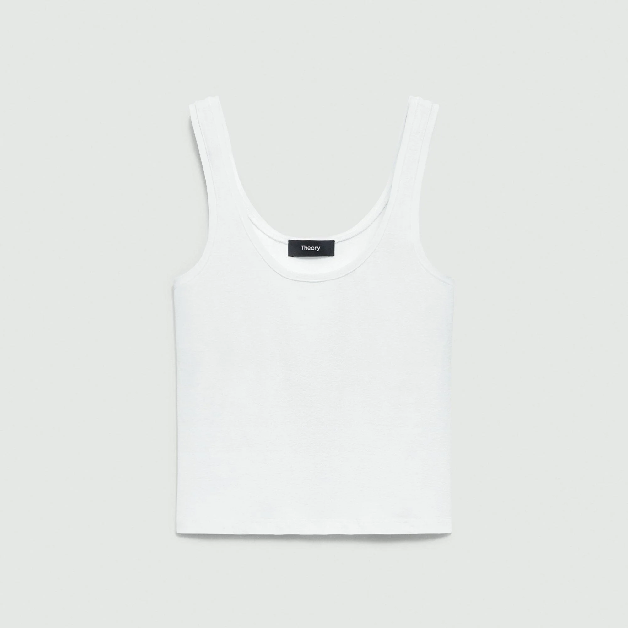 Please enter your email below to be notified when this item is in stock Our scoop neck tank top offers a fitted shape in a slightly cropped silhouette. This style is crafted in our core tubular stretch jersey, made in Italy from a blend of nylon and elastane. Style #: P0327511 Please enter your email below to be notified when this item is in stock Fit True to size, choose your normal size Fitted, sleeveless Waist length Model is 5’11” and one size fits most Materials & Care Composition 92% nylon 8% elastane Care Machine wash cold. Do not bleach or tumble dry. Cool iron if needed. Dry clean with perchloroethylene. Imported.