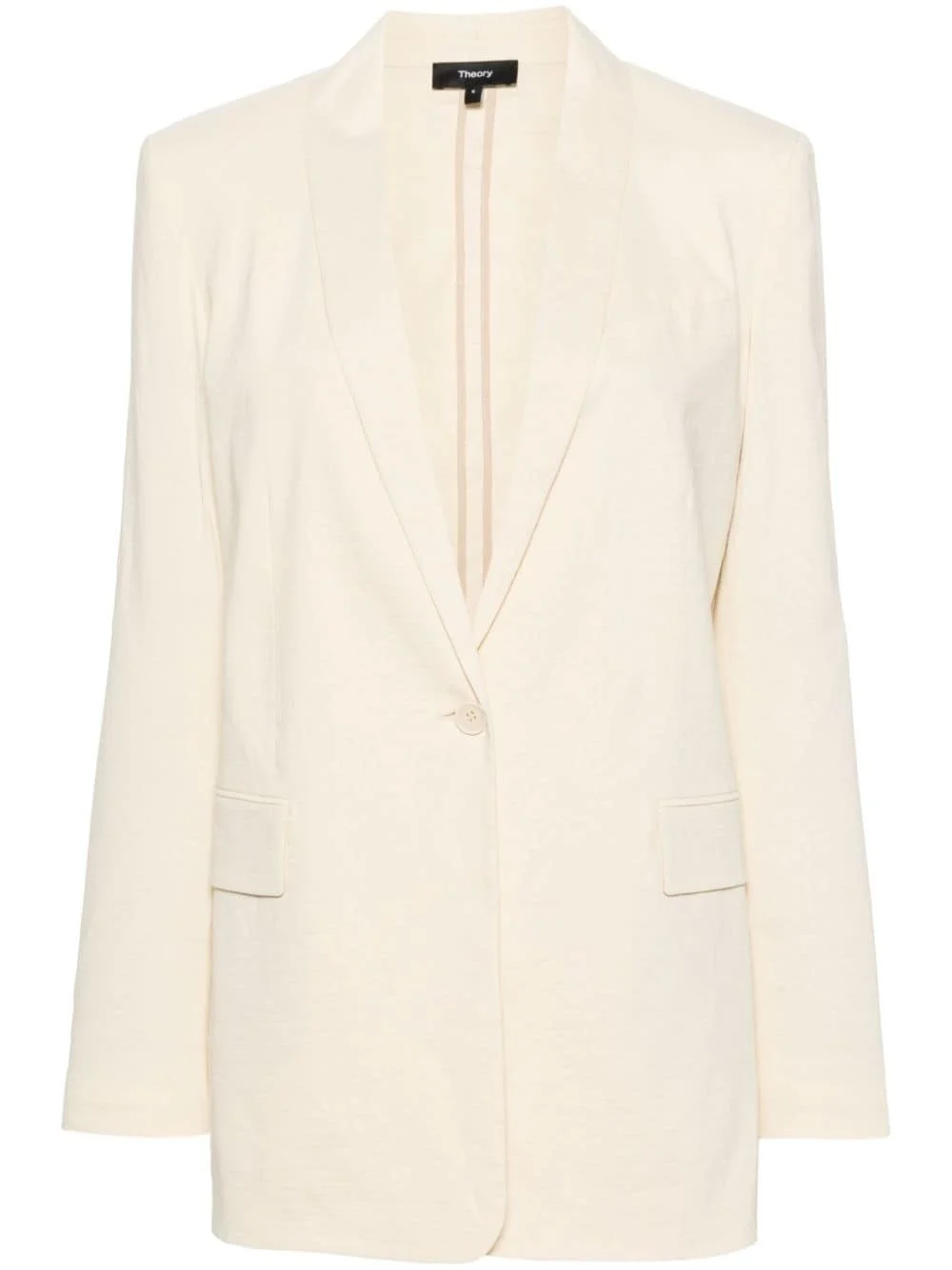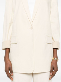 shawl-lapels single-breasted blazer Highlights - Ivory white - Linen blend - Shawl lapels - Long sleeves with turn-up cuffs - Chest welt pocket - Dart detailing - Two side flap pockets - Central rear vent - Straight hem - Front button fastening Imported Composition Outer: Linen/Flax 62%, Viscose 36%, Spandex/Elastane 2% Lining: Cotton 69%, Nylon 27%, Spandex/Elastane 4% SIZE & FIT Model measurements Height 5 ft 8 in(1.73 m) Bust/Chest 29.92 in(76 cm) Hips 33.07 in(84 cm) Waist 23.22 in(59 cm) FittingInformation Designed for a relaxed fit, this piece allows for comfort and movement when worn The internal shoulder pads offer a structured shape Made from a midweight stretch fabric, this piece offers elasticity and flexibility when worn This piece fits true to size – take your usual size