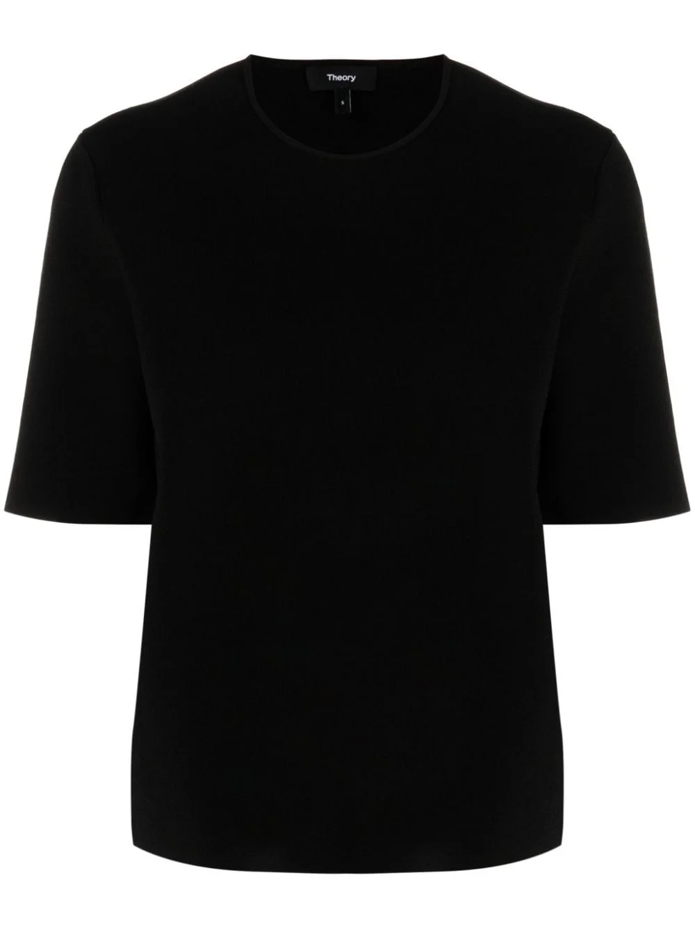 short-sleeve jersey T-shirt Highlights - Black - Scuba jersey - Round neck - Short sleeves - Straight hem Imported Composition Outer: Viscose 64%, Nylon 21%, Polyester 13%, Spandex/Elastane 2% SIZE & FIT Model measurements Height 5 ft 9 in(1.75 m) Bust/Chest 31.88 in(81 cm) Hips 35.03 in(89 cm) Waist 23.22 in(59 cm) FittingInformation Designed to be unstructured, offering a loose fit throughout Made from a midweight stretch fabric, this piece offers elasticity and flexibility when worn This piece fits true to size – take your usual size
