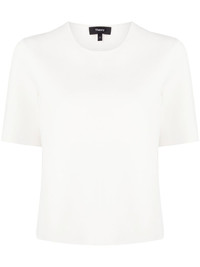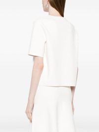 short-sleeve jersey T-shirt Highlights - White - Scuba jersey - Round neck - Short sleeves - Straight hem Imported Composition Outer: Viscose 64%, Nylon 21%, Polyester 13%, Spandex/Elastane 2% SIZE & FIT Model measurements Height 5 ft 9 in(1.75 m) Bust/Chest 31.88 in(81 cm) Hips 35.03 in(89 cm) Waist 23.22 in(59 cm) FittingInformation Designed to be unstructured, offering a loose fit throughout Made from a midweight stretch fabric, this piece offers elasticity and flexibility when worn This piece fits true to size – take your usual size