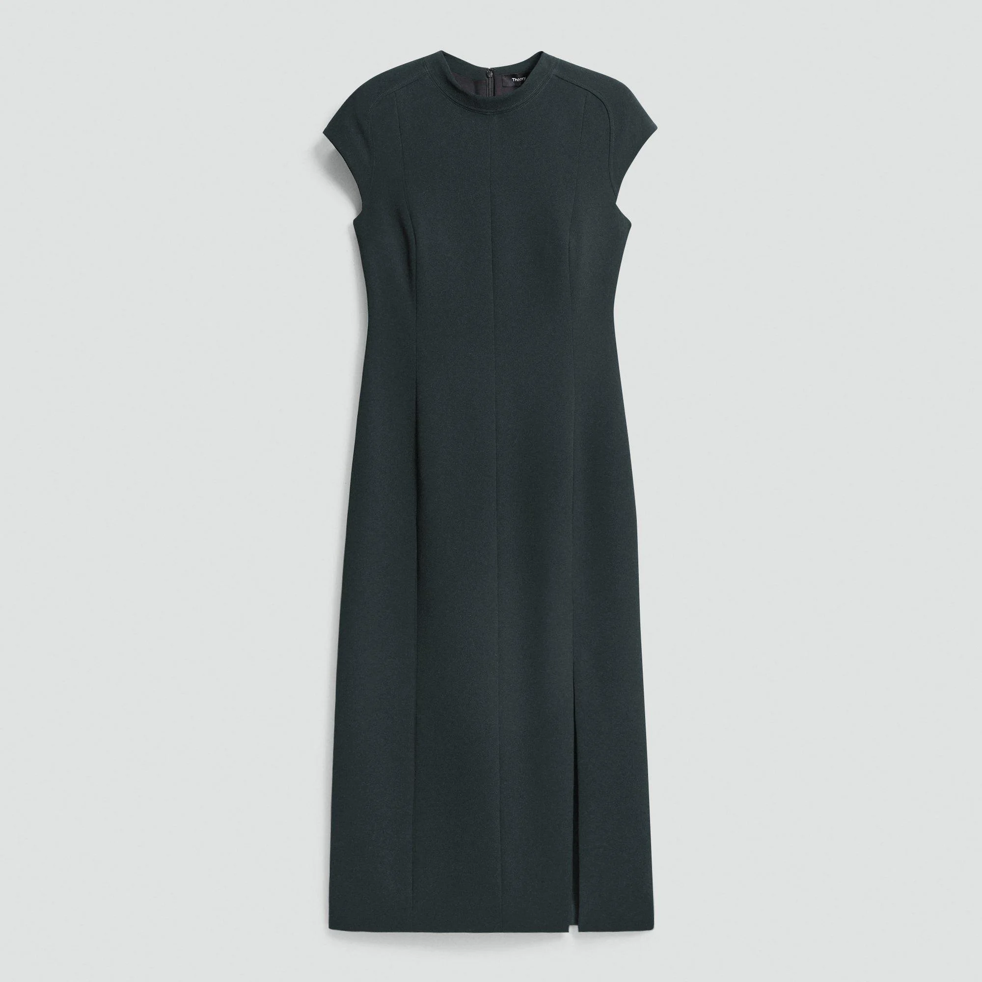 Please enter your email below to be notified when this item is in stock Cut to achieve a slim fit, this midi-length style features a mock neckline, short sleeves, and a straight hem with a front slit. Crafted with our signature Japanese Admiral Crepe for a smooth and softly draped fit, it’s finished with a straight hem and a back zip closure. Our signature crepe is woven with triacetate, a fabric made of wood pulp sourced from certified responsibly managed forests. Style #: P0709607 Please enter your email below to be notified when this item is in stock Materials & Care Composition 70% triacetate 30% polyester Care Do not wash. Do not bleach. Do not tumble dry. Cool iron if needed. Dry clean with any solvent except trichloroethylene. Imported