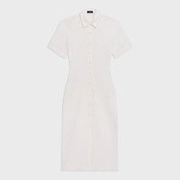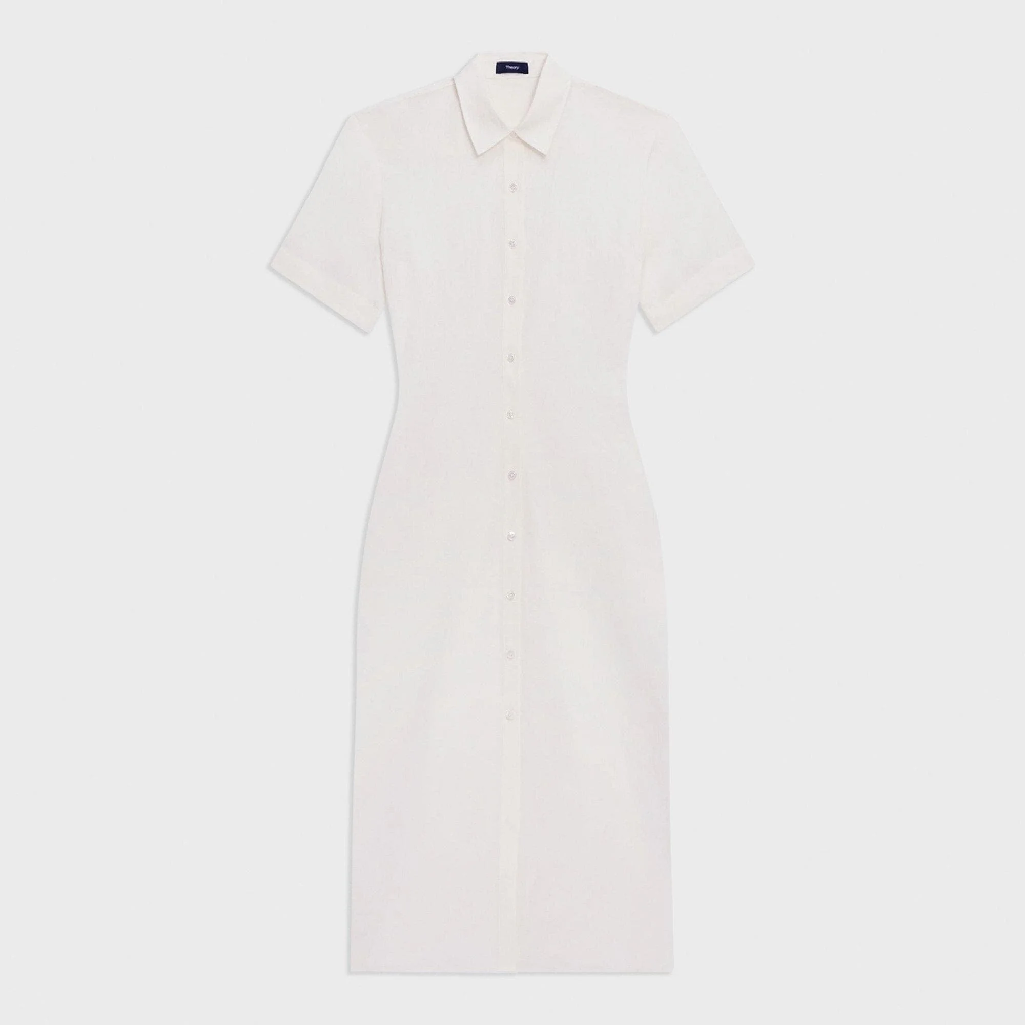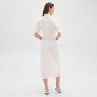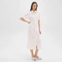 A button-up style with a pointed collar, our shirt dress is tailored along a subtle mermaid silhouette with elbow-length sleeves. This midi dress is cut from a slub linen produced by a leading mill in Prato, Italy using certified flax from Europe. Style #: O0503614 Fit True to size, choose your normal size Fitted silhouette, short sleeves Below-the-knee length Model is 5’11” and wearing a US size 2 Materials & Care Composition 100% linen Care Do not wash. Do not bleach. Do not tumble dry. Cool iron if needed. Dry clean with any solvent except trichloroethylene. Imported