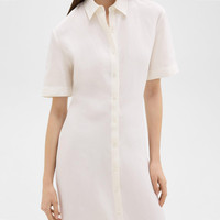 Short-Sleeve Shirt Dress in Galena Linen