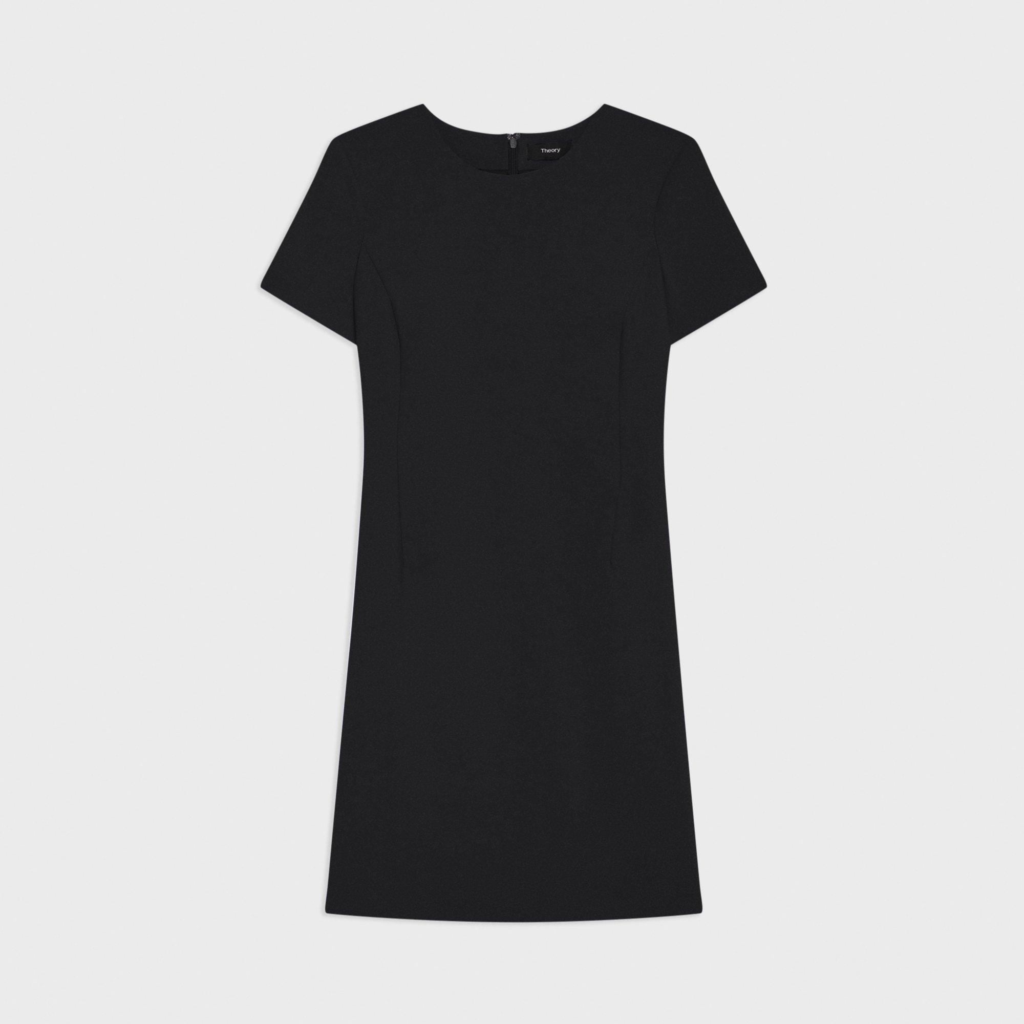 This short-sleeve dress is tailored in a sheath silhouette with a round neck and princess seams. Crafted in our signature Good Wool, it’s fully lined and fastens with an invisible back zip closure for ease of wear. Theory for Good We are committed to making a positive impact on the people who wear our clothes, our industry, and our planet, beginning with our Good fabrics. Consciously manufactured from start to finish, our Good Wool is crafted with premium merino wool. It’s sourced from farms in Australia, including the Beaufront farm in Tasmania and woven by the Tollegno 1900 mill in Biella, Italy. Learn more about our Good Wool. Style #: H0101632 Fit True to size, choose your normal size Sheath silhouette, short sleeves Mid-thigh length Model is 5’11” and wearing a US size 2 Materials & Care Composition 96% wool 4% elastane Care Do not wash. Do not bleach. Do not tumble dry. Cool iron if needed. Dry clean with any solvent except trichloroethylene. Imported