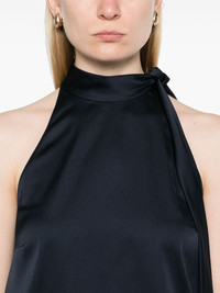 textured-satin halter top Highlights - Midnight blue - Side button fastening - Tie-fastening straps - Dart detailing - Sleeveless Imported Composition Polyester 100% SIZE & FIT FittingInformation Designed for a relaxed fit, this piece allows for comfort and movement when worn The dart stitching adds structure and a closer fit in the torso of this piece Made from a lightweight non-stretch fabric Washing instructions Dry Clean Only