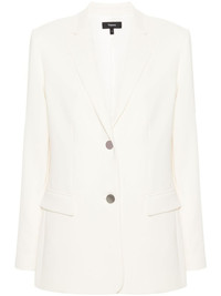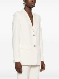 single-breasted blazer Highlights - Ivory white - Interlock weave - Notched lapels - Long sleeves - Buttoned-cuff sleeves - Two front flap pockets - Central rear vent - Full lining - Front button fastening Imported Composition Outer: Triacetate 70%, Polyester 30% Lining: Polyester 100% SIZE & FIT Model measurements Height 5 ft 11 in(1.8 m) Bust/Chest 32.67 in(83 cm) Hips 36.22 in(92 cm) Waist 24.4 in(62 cm) FittingInformation Designed for a slim fit that sits just away from the body offering a close yet comfortable fit The internal shoulder pads offer a structured shape Made from a midweight fabric This piece fits true to size – take your usual size Washing instructions Dry Clean Only