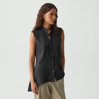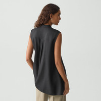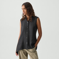 Please enter your email below to be notified when this item is in stock An asymmetrical hem adds a trendy flare to this sleeveless shirt. Buttoned up the front, it is cut from an elevated stretch twill produced by a leading mill in Montemurlo, Italy using linen sourced from Europe and blended with viscose made from certified responsibly sourced wood pulp. Style #: P0403511 Please enter your email below to be notified when this item is in stock Fit True to size, choose your normal size Fit-and-flare silhouette, sleeveless Hip length Model is 5’11” and wearing a US size S Materials & Care Composition 52% linen 45% viscose 3% elastane Care Do not wash. Do not bleach. Do not tumble dry. Cool iron if needed. Dry clean with any solvent except trichloroethylene. Imported