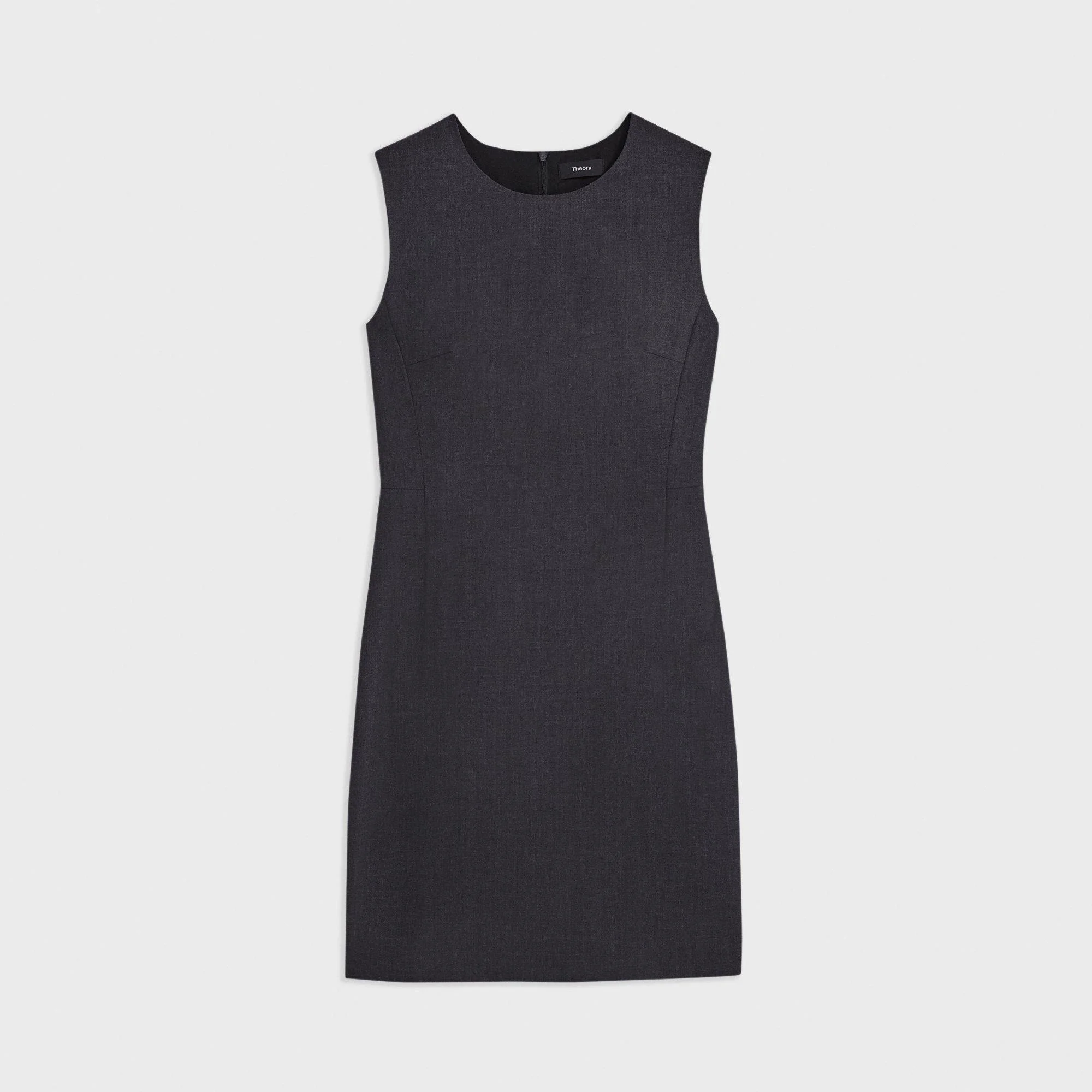 A versatile style that works for any occasion, this sleeveless dress features a round neckline, strategically placed darts, and an invisible back zip closure for ease. It’s fully lined and meticulously tailored from our signature Good Wool. Theory for Good We are committed to making a positive impact on the people who wear our clothes, our industry, and our planet, beginning with our Good fabrics. Consciously manufactured from start to finish, our Good Wool is crafted with premium merino wool. It’s sourced from farms in Australia, including the Beaufront farm in Tasmania and woven by the Tollegno 1900 mill in Biella, Italy. Learn more about our Good Wool. Style #: J0701615 Fit True to size, choose your normal size Sheath silhouette, sleeveless Above knee length Model is 5’11” and wearing a US size 2 Materials & Care Composition 96% wool 4% elastane Care Do not wash. Do not bleach. Do not tumble dry. Cool iron if needed. Dry clean with any solvent except trichloroethylene. Imported