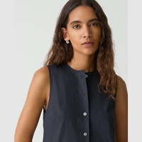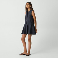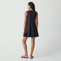 Tailored for a relaxed fit in a voluminous silhouette with a drop waist, this mini dress features a crew neckline and buttons up the front. Crafted from our signature stretch Good Linen fabric, this sleeveless style is a warm-weather everyday favorite. Theory for Good Woven by the Marini & Cecconi Mill in Prato, Italy, Good Linen is our signature stretch linen fabric, made up of three fibers—flax sourced from France, viscose made from repurposed waste cotton fibers, and recycled elastane for stretch. Learn more about our Good Linen. Style #: P0303608 Fit True to size, choose your normal size Relaxed fit, sleeveless Above-the-knee length Model is 5’11” and wearing a US size S Materials & Care Composition 62% linen 36% viscose 2% elastane Care Do not wash. Do not bleach. Do not tumble dry. Cool iron if needed. Dry clean with any solvent except trichloroethylene. Imported