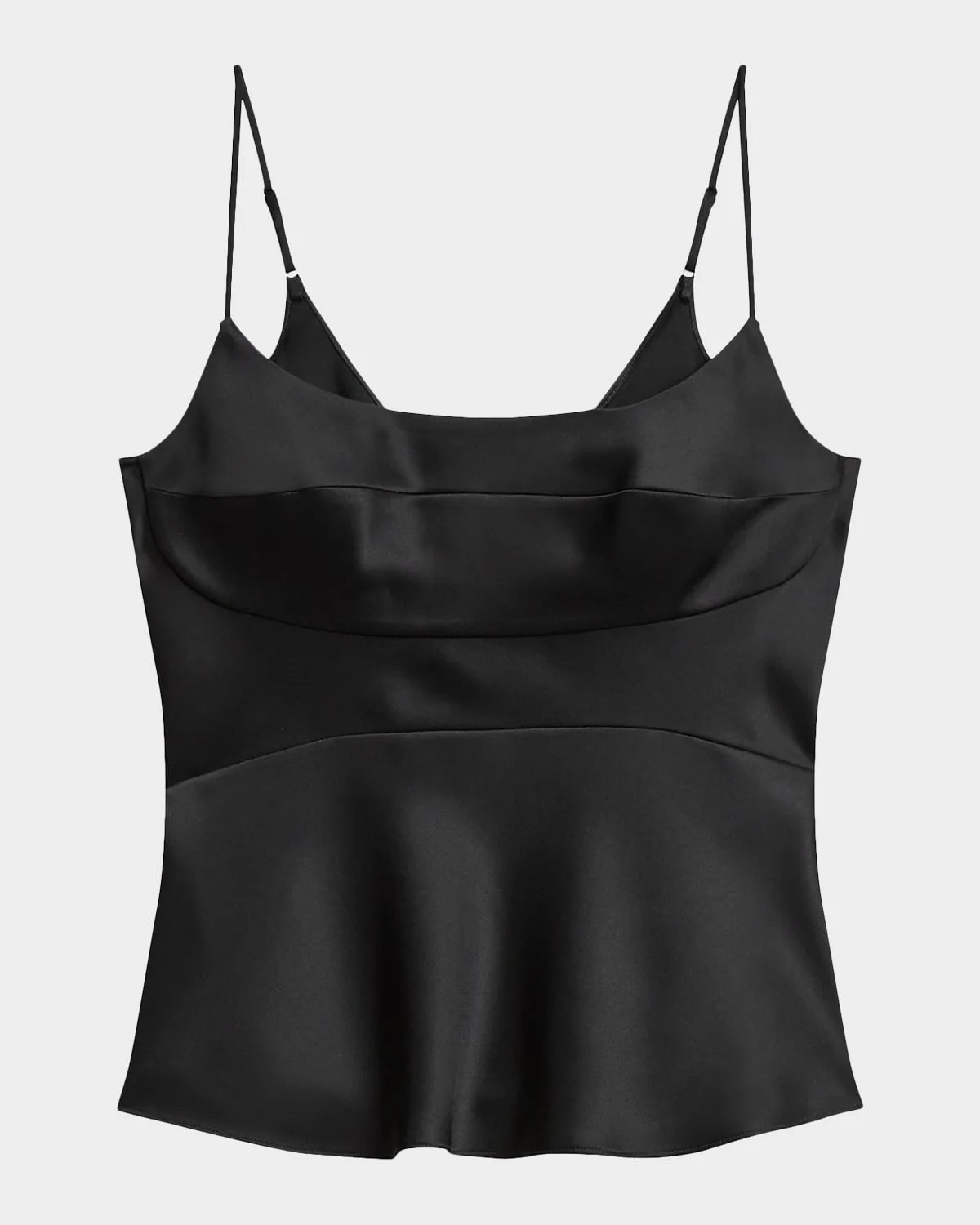 Luxe satin midi dress adorned with sculpted seam details by Theory. Scoop neckline Adjustable spaghetti straps Slip silhouette Full length Side zip Triacetate Dry clean Imported