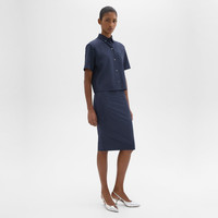 Our pencil skirt is tailored with a high-waist which flatters with a slim-cut profile. It’s crafted with Good Wool with a hint of stretch for a relaxed feel. Theory for Good We are committed to making a positive impact on the people who wear our clothes, our industry, and our planet, beginning with our Good fabrics. Consciously manufactured from start to finish, our Good Wool is crafted with premium merino wool. It’s sourced from certified responsibly managed farms in Australia, including the Beaufront farm in Tasmania and woven by the Tollegno 1900 mill in Biella, Italy. Learn more about our Good Wool. Style #: N1001312 Fit True to size, choose your normal size High rise, pencil silhouette Knee length Model is 5’11” and wearing a US size 2 Materials & Care Composition 96% wool 4% elastane Care Do not wash. Do not bleach. Do not tumble dry. Cool iron if needed. Dry clean with any solvent except trichloroethylene. Imported