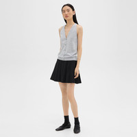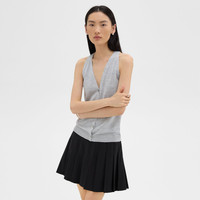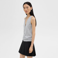 This sweater vest is made from a fine-gauge merino wool from Australia that’s spun and knit in Italy. Its minimalist silhouette features high cut armholes and punctuated with mother of pearl buttons. We are committed to making a positive impact on the people who wear our clothes, our industry, and our planet, beginning with our Good fabrics. This single-origin sourced wool is fully traceable to Congi Farm, located in Woolbrook, New South Wales, Australia. This luxury yarn is produced by Botto Giuseppe, a forward-thinking mill and leader in sustainability, located in Biella, Italy. Style #: O0711715 Fit True to size, choose your normal size Slim fit, sleeveless Hip length Model is 5’11” and wearing a US size S Materials & Care Composition 100% wool Care Hand wash cold. Do not bleach. Lay flat to dry in shade, do not tumble dry. Cool iron if needed. Dry clean with any solvent except trichloroethylene. Imported