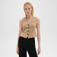 The vest is trending. Styled as a stand-alone top for an of-the-moment take or layered with coordinating tailored pieces, this slim-fit silhouette is cut to flatter. Punctuated with buttons, it’s crafted from fine Italian wool flannel that’s soft, lightweight and has a sophisticated look. We are committed to making a positive impact on the people who wear our clothes, our industry, and our planet, beginning with our Good fabrics. This wool is traceable to the Woodside farm in Victoria, Australia, and is consciously woven by the Botto Giuseppe mill in Biella, Italy. Style #: O0801105 Fit True to size, choose your normal size Slim fit, sleeveless Waist length Model is 5’11” and wearing a US size 2 Materials & Care Composition 100% virgin wool Care Do not wash. Do not bleach. Do not tumble dry. Warm iron if needed. Dry clean with any solvent except trichloroethylene. Imported
