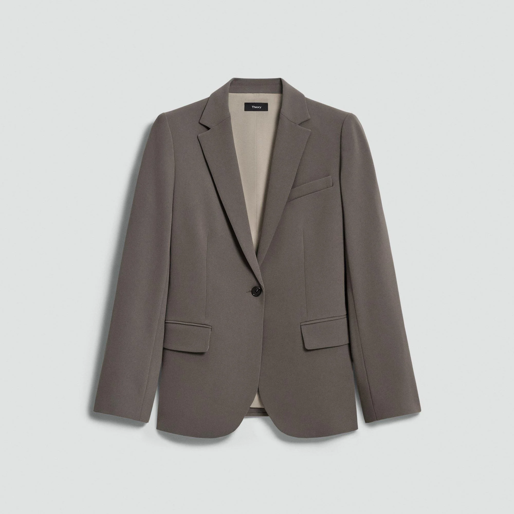 Please enter your email below to be notified when this item is in stock Our Staple blazer is a slim-fitting silhouette that’s lightly constructed and features a single-button front closure and notch lapels. Offered in our signature Japanese Admiral Crepe, it’s detailed with an angled chest pocket, cutaway front, and waist flap pockets. We are committed to positively impacting the people who wear our clothes, our industry, and our planet, beginning with our fabrics. Our signature Admiral Crepe is woven with triacetate, a fabric made from acetic acid and wood pulp sourced from sustainably managed forests. Style #: J0709113 Please enter your email below to be notified when this item is in stock Fit True to size, choose your normal size Slim fit, long sleeves Regular length Model is 5’11” and wearing a US size 2 Materials & Care Composition 70% triacetate 30% polyester Care Do not wash. Do not bleach. Do not tumble dry. Cool iron if needed. Dry clean with any solvent except trichloroethylene. Imported