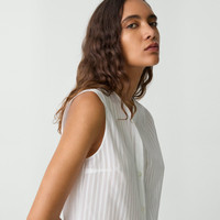 Please enter your email below to be notified when this item is in stock Cut along a crew neckline, this shell top buttons up the front for a slightly cropped, relaxed fit. It’s crafted of a cotton semi-sheer shirting fabric with a tonal stripe pattern that plays with transparency, perfect for the warmer months of the year. Style #: P0404513 Please enter your email below to be notified when this item is in stock Fit True to size, choose your normal size Relaxed fit, sleeveless Waist length Model is 5’11” and wearing a US size S Materials & Care Composition 100% cotton Care Hand wash cold. Do not bleach. Do not tumble dry, hang to dry in shade. Cool iron if needed. Dry clean with any solvent except trichloroethylene. Imported