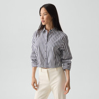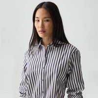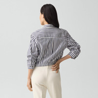 Please enter your email below to be notified when this item is in stock Cropped to fall at the waist, our shirt has a relaxed fit with a standard pointed collar and fixed three-quarter sleeves. This button-front style is tailored in a stretch poplin with wide, bold stripes in a playful pop of color. Style #: P0704506 Please enter your email below to be notified when this item is in stock Fit True to size, choose your normal size Cropped length Model is 5’11” and wearing a US size S Materials & Care Composition 75% cotton 22% nylon 3% spandex Care Hand wash cold. Do not bleach. Do not tumble dry, hang to dry in shade. Cool iron if needed. Dry clean with any solvent except trichloroethylene. Imported