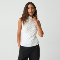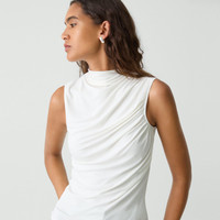 Crafted with a soft viscose-blend rib knit from a leading Japanese mill, this slim-fitting tank top features a mock neckline and an elegantly draped effect. Style #: P0126512 Fit True to size, choose your normal size Slim fit, sleeveless Hip length Model is 5’11” and wearing a US size 2 Materials & Care Composition 95% viscose 5% polyurethane Care Hand wash cold, wash separately, do not use optical brighteners. Do not bleach. Lay flat to dry in shade, do not tumble dry. Cool iron with press cloth if needed. Professional dry clean with petroleum sol. Imported