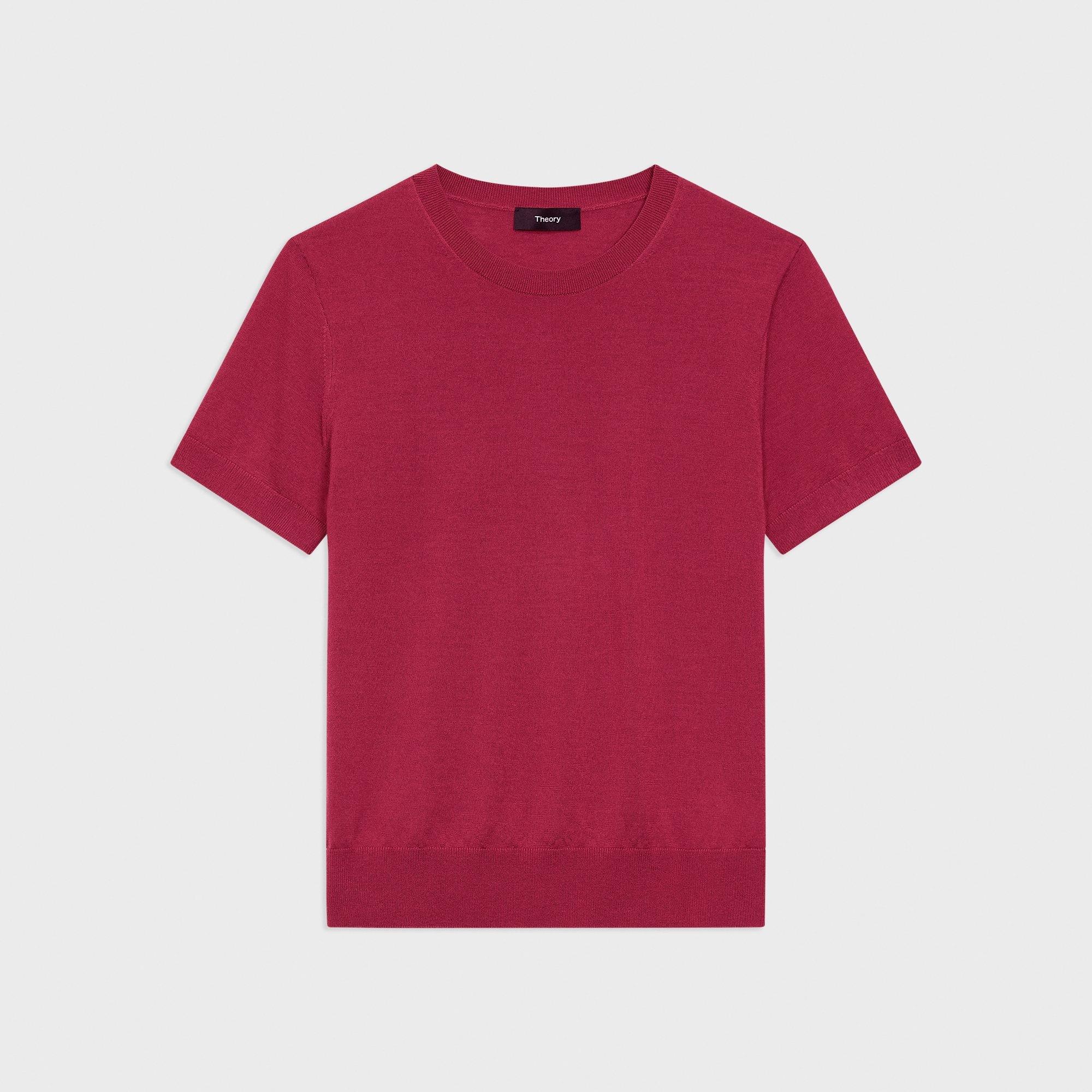 This short-sleeve tee features a crew neck and classic ribbed trim. Perfect for lightweight layering, this sweater is crafted in a fine-gauge merino wool from Australia that’s spun and knit in Italy. We are committed to making a positive impact on the people who wear our clothes, our industry, and our planet, beginning with our Good fabrics. This single-origin sourced wool is fully traceable to Congi Farm, located in Woolbrook, New South Wales, Australia. This luxury yarn is produced by Botto Giuseppe, a forward-thinking mill and leader in sustainability, located in Biella, Italy. Style #: I1211701 Fit True to size, choose your normal size Slim fit, short sleeves Hip length Model is 5’10” and wearing a US size S Materials & Care Composition 100% wool; exclusive of elastic Care Hand wash cold. Do not bleach. Lay flat to dry in shade, do not tumble dry. Cool iron if needed. Dry clean with any solvent except trichloroethylene. Imported