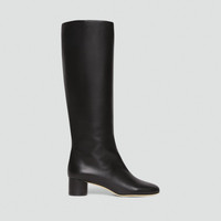 Please enter your email below to be notified when this item is in stock This pull-on, knee-high boot is crafted in smooth Italian leather with a soft square toe and cylindrical heel. Finished with a cushioned sock lining, this style is designed for relaxed, everyday wear. We are proud to use sustainable packaging for our footwear. Our shoe box is made from 100% certified recycled fibers from post-consumer waste. Every aspect of this box’s construction is recyclable. From the white paper that wraps the box to the cardboard to the glue that holds it all together. Style #: P08AC005 Please enter your email below to be notified when this item is in stock Fit True to size, choose your normal size Model is 5’11” and wearing a US size 2 Materials & Care Composition 100% lamb leather