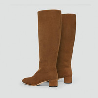 Please enter your email below to be notified when this item is in stock This pull-on, knee-high boot is crafted in smooth Italian suede with a rounded toe and cylindrical heel. Finished with a cushioned sock lining, it’s designed for relaxed, everyday wear. We are proud to use sustainable packaging for our footwear. Our shoe box is made from 100% certified recycled fibers from post-consumer waste. Every aspect of this box’s construction is recyclable. From the white paper that wraps the box to the cardboard to the glue that holds it all together. Style #: P08AC006 Please enter your email below to be notified when this item is in stock Fit True to size, choose your normal size Model is 5’11” and wearing a US size 2 Materials & Care Composition 100% goat leather