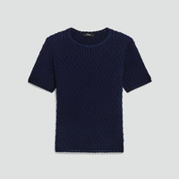 Please enter your email below to be notified when this item is in stock This versatile tee features a crew neckline and short sleeves. Designed for a slim fit, it’s knit in a warm-handed, certified organic cotton yarn with textured stitches and soft dimension. It's fine thread count gives it a versatile weight to wear in any season. Style #: Q0214720 Please enter your email below to be notified when this item is in stock Materials & Care Composition 100% cotton Care Hand wash cold. Do not bleach. Lay flat to dry in shade, do not tumble dry. Cool iron if needed. Dry clean with any solvent except trichloroethylene. Imported
