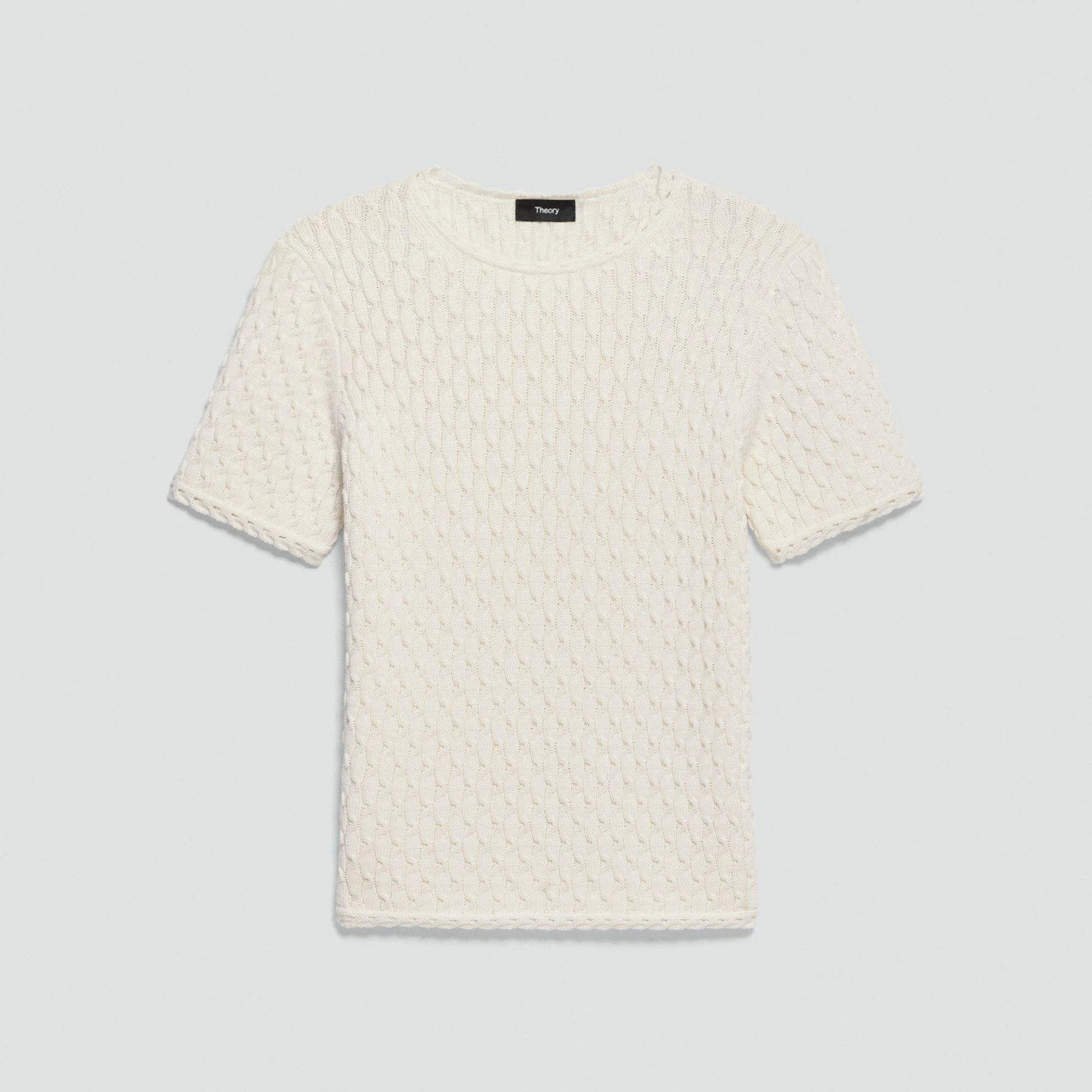 Please enter your email below to be notified when this item is in stock This versatile tee features a crew neckline and short sleeves. Designed for a slim fit, it’s knit in a warm-handed, certified organic cotton yarn with textured stitches and soft dimension. It's fine thread count gives it a versatile weight to wear in any season. Style #: Q0214720 Please enter your email below to be notified when this item is in stock Materials & Care Composition 100% cotton Care Hand wash cold. Do not bleach. Lay flat to dry in shade, do not tumble dry. Cool iron if needed. Dry clean with any solvent except trichloroethylene. Imported