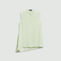 Please enter your email below to be notified when this item is in stock An asymmetrical hem adds a trendy flare to this sleeveless shirt. Buttoned up the front, it is cut from an elevated stretch twill produced by a leading mill in Montemurlo, Italy using flax sourced from Europe and blended with viscose made from certified responsibly sourced wood pulp. Style #: P0403511 Please enter your email below to be notified when this item is in stock Fit True to size, choose your normal size Fit-and-flare silhouette, sleeveless Hip length Model is 5’11” and wearing a US size S Materials & Care Composition 52% linen 45% viscose 3% elastane Care Do not wash. Do not bleach. Do not tumble dry. Cool iron if needed. Dry clean with any solvent except trichloroethylene. Imported