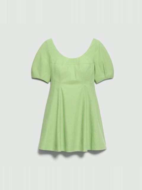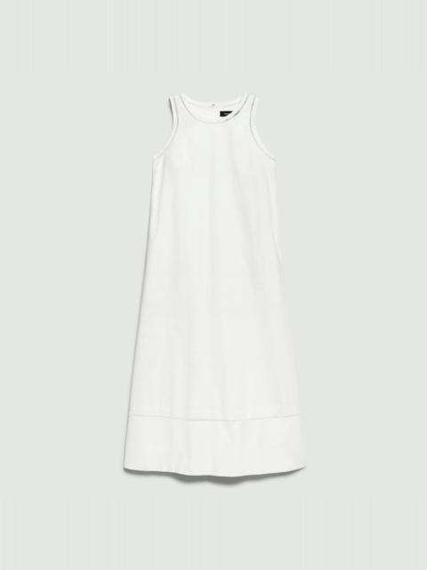 Please enter your email below to be notified when this item is in stock Cut to an A-line silhouette, this sleeveless midi dress features ruched detailing along an asymmetrical stitch and fastens with a back zip closure. It’s crafted in a tumbled lightweight lawn fabrication woven with a blend of cotton and certified recycled nylon by a leading Japanese mill. Style #: P0504605 Please enter your email below to be notified when this item is in stock Fit True to size, choose your normal size A-line silhouette, sleeveless Model is 5’11” and wearing a US size 2 Materials & Care Composition 68% cotton 32% recycled nylon Care Do not wash, bleach, or tumble dry. Cool iron if needed. Dry clean with any solvent except trichloroethylene. Imported.