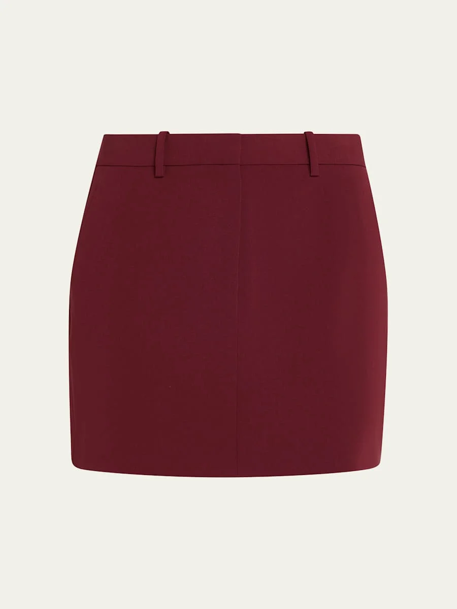 Theory trouser-inspired skirt cut from Admiral Crepe Sits at the natural waist Side slash pockets Back welt pockets Straight silhouette Mini length Button/zip fly; belt loops Triacetate/polyester Dry clean Imported Model is 5'10"/177cm. Online Inquiries: BGS21_T6Z6P| Store Inquiries: #4603147