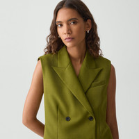 Please enter your email below to be notified when this item is in stock Punctuated with peak lapels and a single welt pocket, this double-breasted vest is fully lined and cropped at waist length. It’s tailored for a relaxed fit to ensure a comfortable feel. Produced in Japan, the lightweight, wrinkle-resistant fabric is woven using a twill construction. Style #: P0605101 Please enter your email below to be notified when this item is in stock Fit True to size, choose your normal size Relaxed fit, sleeveless Cropped length Model is 5’11” and wearing a US size 2 Materials & Care Composition 100% polyester Care Do not wash. Do not bleach. Do not tumble dry. Cool iron if needed. Professional dry clean with petroleum solvent only. Imported