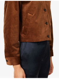 PRODUCT DETAILS - Theory cotton-blend jacket - 75% cotton, 22% modal, 3% elastane - Button fastening - Cropped boxy fit, coller, long sleeves, buttoned cuffs, two welt pockets at front, fully lined - Dry clean - True to size - Size small: length 20.5in / 50.8cm - Model is 5ft 10in/1.78m and wears a size small - Midweight, non-stretch Ref: R04560747