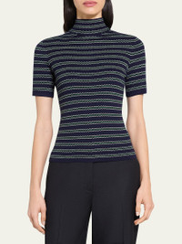 - The "Leenda" tee by Theory in a seasonal fall stripe. - Turtleneck - Short sleeves; approx. 16"L - Classic fit - Hem sits at the hip - Pullover style - Wool - Imported